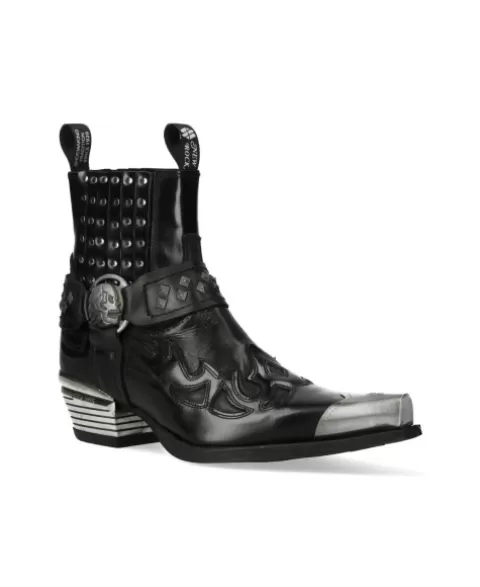 New Rock Western^Ankle Boot Black Suela M-Wstm004-S2