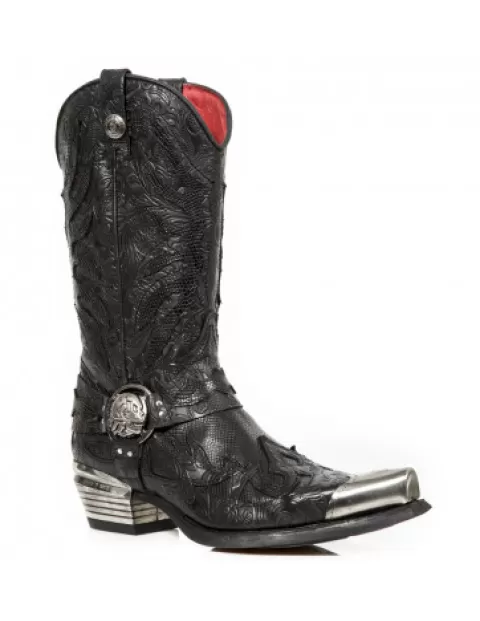 New Rock Western^Ankle Boot Black Suela M-Wstm004-S2
